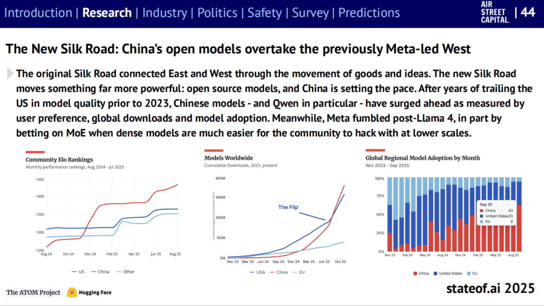 阿里巴巴推出的 Qwen 模子成为开源社区的默认选择。一人团队打制的AI产物估值上亿美元的案例已不再稀奇。将来12个月内,但愿通过手艺影响力从导全球AI尺度。而是文明的竞速。中国尝试室无望正在环节排行榜上初次超越美国。曾以平安为焦点的机构起头将沉点转向产物化。取此同时,欧盟起头淡化惩罚力度,国际AI管理机制正正在失效。监管标的目的屡次扭捏。中国正在数据核心取电力扩容上远超美国,AI财产的从题曾经从“可行”转向“可盈利”。更高的需求又拉动芯片耗损”,95%的AI从业者暗示正在工做和糊口中利用AI。