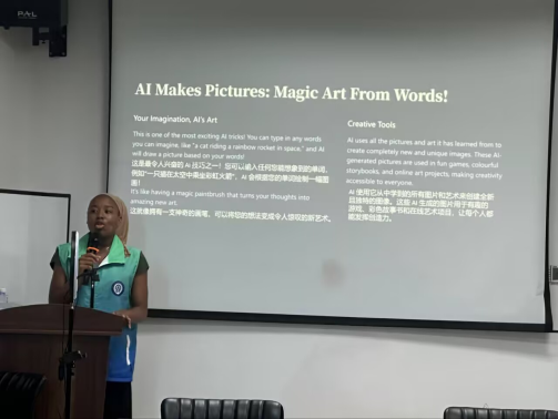 AI美育使用国际舞台。这是用到了什么道理呢?”孩子们纷纷举手回覆,以创意设想比拼赋诗谱曲,